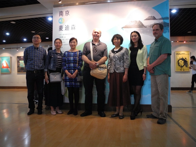 5月25日上午,美术学院举办“南京遇上麦迪森”---麦迪森海特学院王育林教授、我校美术学院路明副教授视觉设计专业作业交流展开幕式。党委书记李洪天、院长王仁雷、副院长张勤及相关职能部门领导到现场参观并给予高度的评价。