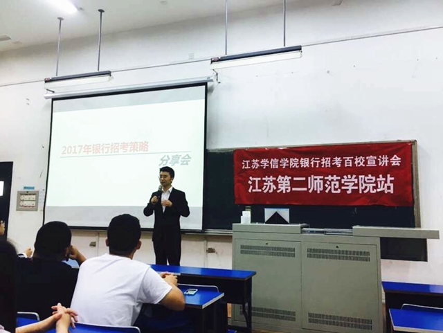 为贯彻落实教育部、省教育厅毕业生就业工作文件精神,提升我校学生就业竞争力,提高就业质量,6月2日下午,招就处邀请学信学院的银行招考专家在浦口校区举办了“银行招考策略讲座”。