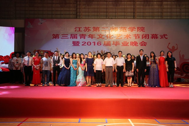 6月15日晚,我校第三届“喝彩青春”青年文化艺术节闭幕式暨2016届毕业晚会在草场门校区体育馆隆重举行,副院长周成平、副院长张勤、纪委书记刘青平及各相关职能部门负责人、分团委书记出席晚会,与现场近600名学生代表济济一堂,共同观赏了本次盛会。