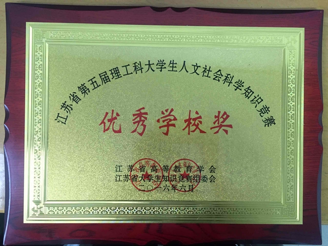 日前,江苏省第五届理工科大学生人文社会科学知识竞赛结果揭晓。我校在本次大赛中喜获佳绩,9人获得省级三等奖,35人获得省级优秀奖,学校荣获“省级优秀学校奖”荣誉称号。