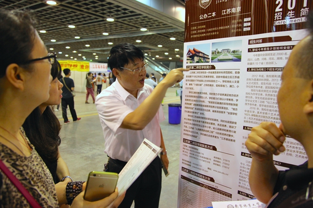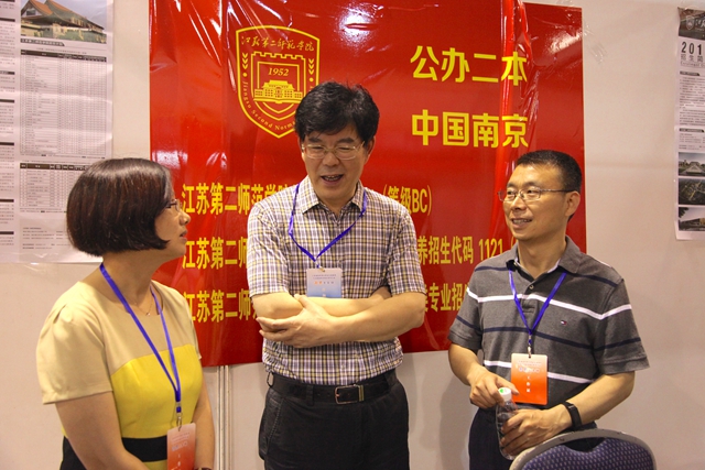 6月25日,我校参加由江苏省高校招生就业指导服务中心、江苏省教育考试院联合举办的2016年江苏省普通高校招生咨询会(南京主会场),由此正式奏响了2016年普高本科招生宣传工作的序曲。院长王仁雷,党委副书记、副院长程建军等来到咨询会现场,看望慰问招生宣传工作人员,热情解答考生和家长提出的问题。
