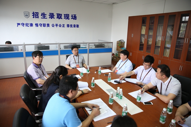 李洪天一行了解网上录取的操作流程,视察录取工作的各个环节,并听取我校2016年普高本科招生录取的最新进展情况汇报。李洪天指出,今年我校招生录取工作整体平稳,总体招生情况良好。他要求各相关部门加强协调,做好后勤保障,确保我校今年的招生录取工作顺利进行,并在招生录取工作结束后做好分析和总结工作。王仁雷指出,高考招生录取工作涉及到广大考生的切身利益,社会关注度高。他要求全体工作人员尽职尽责,增强责任感,切实落实“阳光招生”,严格规范招生程序,认真细化环节管理,不断完善监督机制,做到“零差错”,让考生和家长放心,让社会满意。程建军指出,现在是我校招生录取工作的关键阶段,各录取工作人员要以严谨的态度投入到招录工作中,确保招生工作程序规范、精确,及时发放录取通知书,圆满完成我校招生录取工作,同时要认真总结今年招生工作的得失,为明年更好地开展招生工作提供有效数据和有利对策。