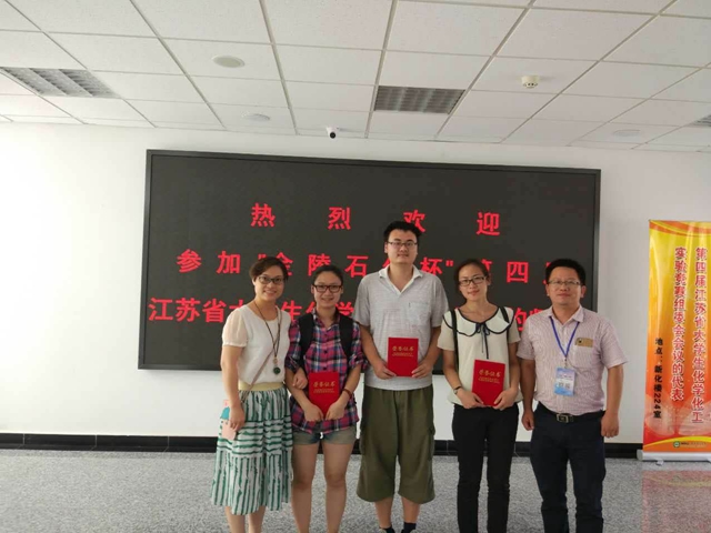 7月20日至22日,由江苏省教育厅、江苏省化学化工学会、江苏省大学生化学化工实验竞赛组委会主办,南京师范大学、江苏省生物功能材料协同创新中心承办,江苏省高校实验室研究会、江苏省高等学校化学化工实验教学示范中心联席会、苏州市兰睿实验室科技有限公司协办的“金陵石化杯”江苏省第四届大学生化学化工竞赛在南京师范大学仙林校区举行。我校生命科学与化学化工学院以黄斌和杜攀老师为领队,2013级化学专业张文凤、杨梅和2014级应用化学专业张乘运为队员的代表队参加本次竞赛并取得优异成绩,这是我校首次受邀参加该项竞赛。