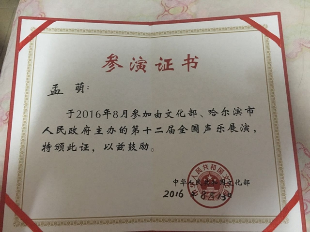 这是继2015年参加全国音乐金钟奖并获奖后,孟萌老师的又一次站上国家级音乐舞台,展示出我校教师的专业能力和学术水准。