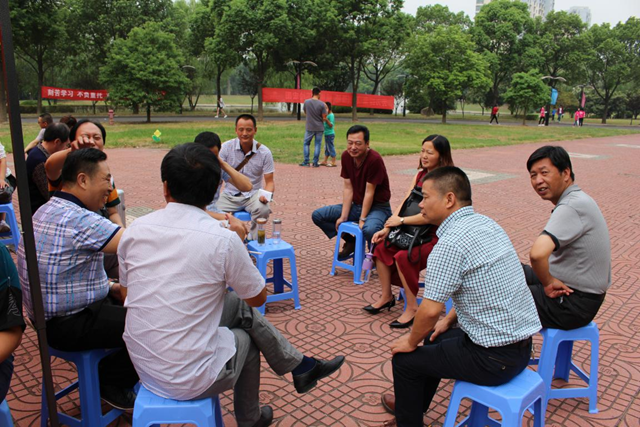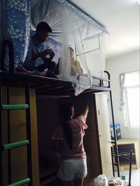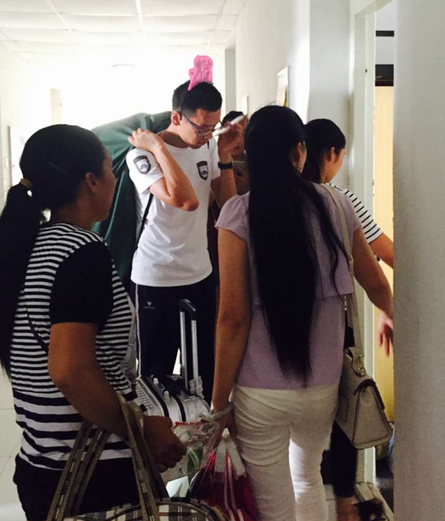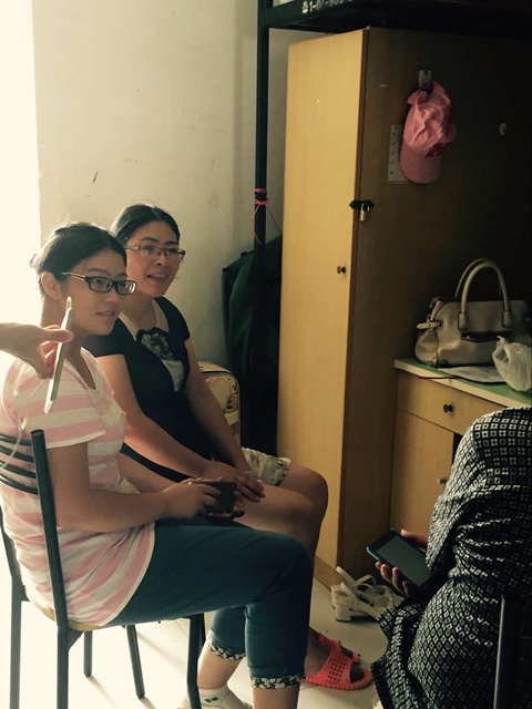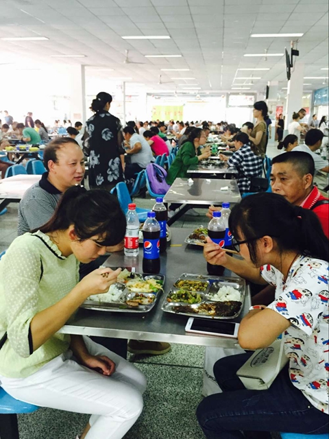 两个贵州姑娘带爸爸一起到食堂吃饭