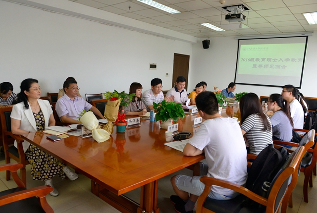 9月9日下午,我校在草场门校区教科研楼503会议室召开2016级教育硕士入学教育暨导师见面会。院长王仁雷、副院长潘文出席,教育硕士培养二级学院院长、硕士生导师、教务处相关工作人员及2016级教育硕士参加会议。会议由潘文主持。