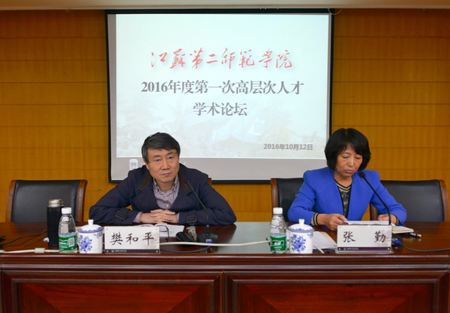 为进一步加强学术交流,活跃学术氛围,提高教师的科研能力和学术水平,推进我校高水平有特色新型师范学院的建设进程,10月12日下午,我校在草场门校区举办2016年度首次高层次人才学术论坛。教育部长江学者特聘教授,江苏省社会科学院党委委员、副院长,东南大学人文社会科学学部主任樊和平教授应邀来校作学术报告。党委书记李洪天,院长王仁雷,副院长张勤、潘文等出席论坛。相关职能部门负责人,各二级学院科研负责人、科研骨干教师等一百五十余人参加此次论坛。