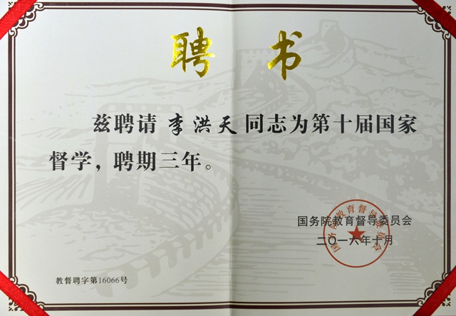 10月20日,国务院教育督导委员会深化教育督导改革暨第十届国家督学聘任工作会议在北京召开,中共中央政治局委员、国务院副总理、国务院教育督导委员会主任刘延东出席会议并为国家督学颁发聘书。我院党委书记李洪天教授、教育科学规划办主任彭钢研究员被聘为第十届国家督学。第十届国家督学共聘任243名。江苏省共10名。