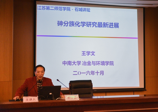 10月26日晚,中南大学钛锆铪冶金研究所副所长王学文教授应邀来我院,面向化学专业的学生作了题为《砷分族化学研究最新进展》的学术报告,生命科学与化学化工学院副院长花书贵主持报告会。