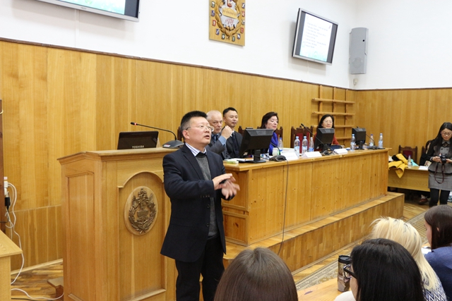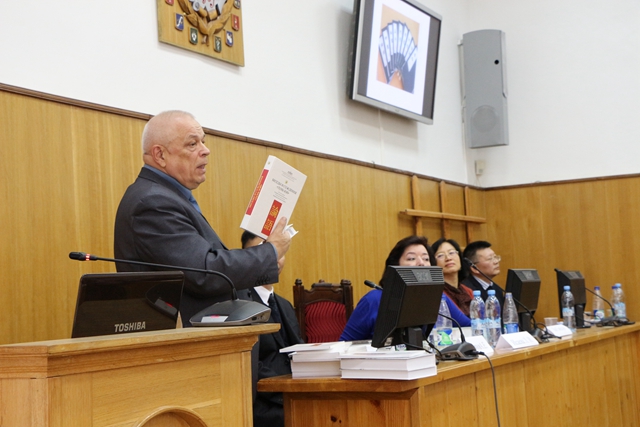 杭州外国语大学教授李磊荣和俄罗斯科学院院士卢基扬诺夫共同主讲《中国的哲学思想和流派:古代哲学思想对中国人观念和行为的影响中国的》。李教授为大家详细介绍了春秋战国时期百家争鸣、流派纷呈的历史,并对各个思想流派所主张的观点作了基本解释;卢基扬诺夫院士则详细阐述了自己多年研究中国古典哲学的心得体会,特别对中国的“天地人”,孔子、老子的思想等作了阐释,并赠送给汉语暨中国研究中心一批自己有关中国古典哲学研究的书籍。