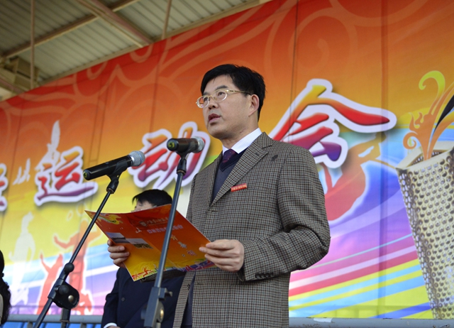 王仁雷致开幕词。他代表党委、行政向本次运动会的开幕致以热烈的祝贺,向刻苦训练、积极备战的运动员以及全体教练员、裁判员和后勤服务人员致以亲切的问候,向在运动会筹备工作中付出大量劳动、洒下辛勤汗水的同志们表示衷心的感谢。王仁雷说,学校体育是全民体育运动的重要组成部分,是学校精神文明建设和校园文化建设的重要内涵。长期以来,我校高度重视开展群众性体育运动,积极开展丰富多彩的文体活动,促进学生养成加强锻炼、提高体质的良好习惯,培养德智体美全面发展的复合型人才。近年来,我校以新校区建设和内涵建设为契机,加大基础建设投入,组建各类文体社团,充实调整体育运动委员会,为加强学校体育工作提供了有力保障。他表示,本届运动会必将成为我校师生员工增强集体荣誉感,增强学校凝聚力、战斗力和向心力的良好契机,必将进一步推动我校包括体育运动在内的各项工作的健康持续协调发展。他希望各位运动员学习并发扬体育健儿“更高、更快、更强”的拼搏精神,赛出水平,赛出风格;希望全体裁判员坚持公平公正的原则,恪尽职守,秉公执法;希望全体工作人员协调配合,认真做好服务保障工作,确保运动会各项工作顺利进行。