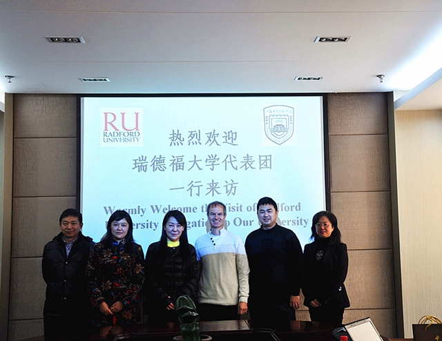 11月24日,美国弗吉尼亚州瑞德福大学国际教育中心主任保罗·卡伦特博士及其随行徐勇博士访问我校。副院长刘继红进行了工作接待,双方就两校合作和交流事宜进行了会谈。国际合作与交流处处长周韵、教务处副处长薛瑞东、外国语学院副院长张莉参加此次会谈。