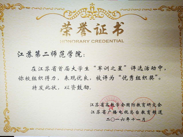 我校在江苏省首届大学生“军训之星”评选中荣获佳绩