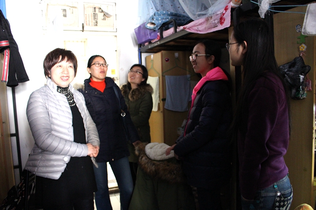 教工党支部一行走访了该院2016级新生宿舍,了解宿舍生活安全情况,关心困难学生,特别是外省新生,询问其校园生活适应情况和寒假火车票购买情况,并叮嘱同学们遇到困难要及时向辅导员、班主任反映。