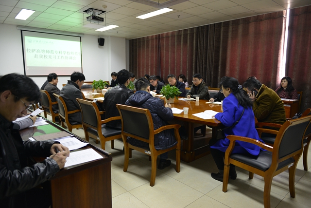 12月19日下午,我校在草场门校区召开拉萨高等师范专科学校师范生来校见习工作协调会,院长王仁雷、副院长徐国华出席会议。各职能部门负责人、各院(部)主管教学领导和教务处相关人员参加会议,会议由徐国华主持。