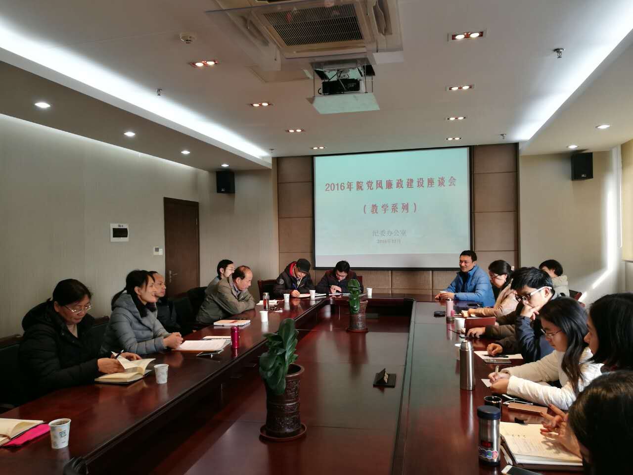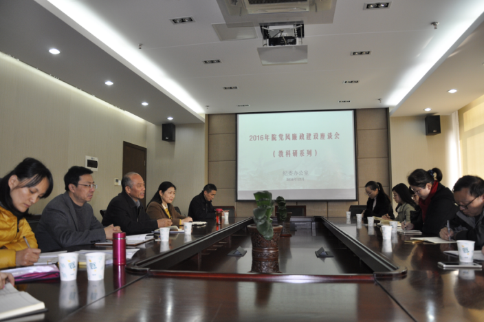 12月23日、28日下午,院纪委按照教科研系列、机关后勤系列和教学系列的次序,在草场门校区教科研楼503、505会议室分三场举行2016年度党风廉政建设座谈会。会议分别由纪委副书记、监察处处长卜玉平和监察处副处长周长宏主持。部分职能部门负责人、院部领导、教科研部门代表、民主党派人士、一线教师、基层管理人员以及院纪委委员等四十多人参加座谈会。