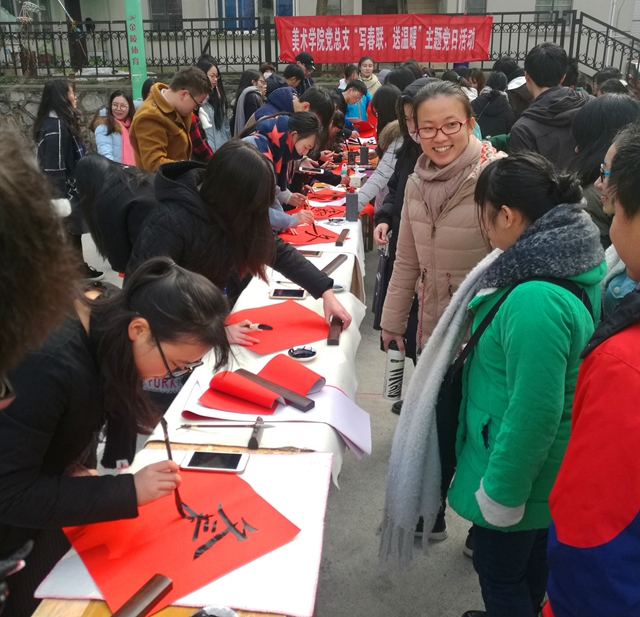 值此新年来临之际,为营造欢乐祥和喜庆的节日气氛,让广大师生切身感受到中国传统文化的气息,12月29日中午,美术学院党总支开展“写春联、送温暖”主题党日活动,美术学院教工党员、学生党员、入党积极分子参加活动。