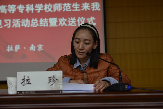 仪式上,在与会人员观看了拉萨师专见习师生见习过程的短片。见习教师代表拉珍和学生代表白马顿珠、多吉晋扎对为期13天的见习情况作了简单汇报。她们对我校见习安排表示满意,对我校各级领导的关心与支持表示感谢。