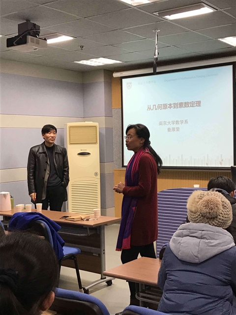 1月12日下午,我校杰出校友、南京大学数学系主任秦厚荣教授应邀来校,为师生作了一场题为“从几何原本到素数定理”的精彩报告。报告会由数学与信息技术学院院长徐新萍教授主持,数信院全体数学教师及部分学生参加。