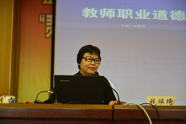 钱焕琦发言的主题是“教师职业道德素养全生涯培养模式的构建”,她认为教师师德的养成应该贯穿在职前、职后整个教师生涯,她希望同学们强化教师角色意识、培养教师职业情感,真正成为习近平总书记所说的“四有”好教师。