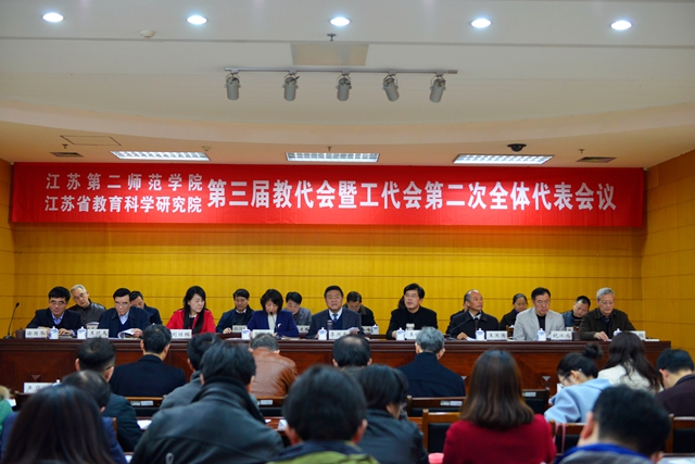 王仁雷作院行政工作报告。报告指出,2016年,我院有序推进五项重点工作,做到人才队伍建设取得突破、制度体系建设逐步规范、溧水校区建设步伐加快、事业发展规划全面实施、干部换届工作顺利完成。同时,在常规工作上取得了五“新”,即教学内涵建设有新进展、科研服务能力有新提高、教育培训工作有新成绩、管理服务效能有新提升、民生工作有新举措。报告对2017年工作目标和工作任务进行了概述,对今年学院在加强和改进思想政治工作、高质量完成专业评估和认证、进一步扩大教育科研影响力、继续加大队伍建设力度、加快溧水校区各项建设进程等重点工作进行了部署。报告指出,2017年是我院深入推进 “十三五”事业发展规划的关键之年,也是迎接专业评估和认证及校区建设的攻坚之年。报告要求各位代表、同志,在省委、省政府的正确领导和省委教育工委、省教育厅的关心支持下,紧密围绕全院党政工作要点的部署,和衷共济、开拓进取,为夺取“十三五”事业发展阶段性攻坚战的新胜利作出更大的贡献,以优异的成绩向党的十九大胜利召开献礼。