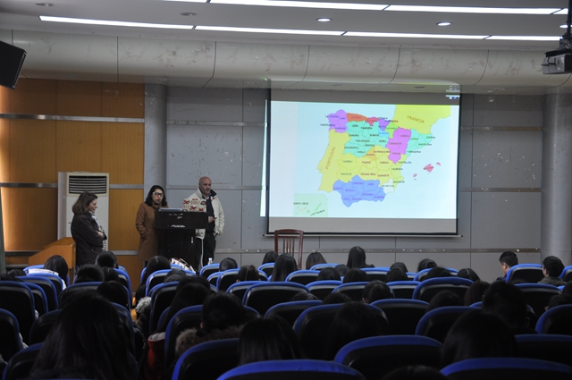 下午,西班牙客人前往浦口校区,在多功能报告厅举办了一场关于西班牙内布里哈大学预科项目的说明会。会上,安东尼奥介绍了西班牙和内布里哈大学的基本情况,特别介绍了其在西班牙排名第一的对外西语教学、数字媒体以及工商管理等优势专业和课程。必拉尔给同学们介绍了预科项目的相关事项,并重点推荐了双语教育硕士项目。会场还进行了积极的互动。