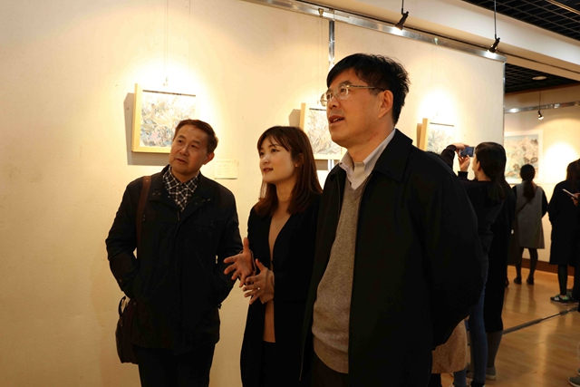 此次展览汇集了三位青年教师近年来的优秀作品,包括书法、中国画、岩彩画,可谓风格迥异、精彩纷呈。展览现场气氛热烈,达到了很好的教学交流效果,得到了师生的一致好评。
