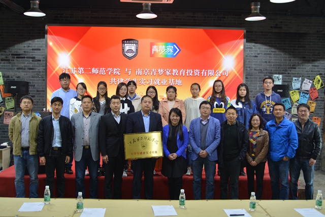 刘继红致辞,她简要回顾了我校办学历史,深度阐述了高校、企业合作共建、协同育人的意义和价值。她表示,我校把就业实习基地建设作为加强大学生就业创业工作的重要抓手,通过构建平台、拓展渠道、嫁接资源等方式,努力提高协同创新能力和就业工作水平。我们期待双方充分发挥青梦家一站式服务的资源优势和我校教师教育的实践特色,在大学生就业指导、生涯规划、创业孵化、留学培训、文化展演等合作领域不断完善机制、丰富形式、拓展渠道,把握主潮流,弘扬正能量,培育新成果,真正把就业实习基地建成大学生职业规划的“咨询台”、掌握本领的“训练场”、走向社会的“加油站”,帮助越来越多的青年大学生实现青春梦想和人生价值,为建设强富美高新江苏、实现教育现代化作出各自应有的贡献。
