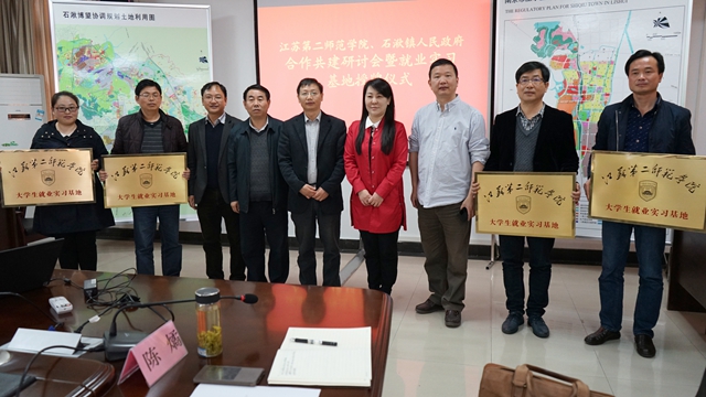 4月13日上午,我校与溧水区石湫镇人民政府举行合作共建研讨会暨就业实习基地挂牌仪式。副院长刘继红,溧水区政府副区长赵敏,溧水区教育局局长马里兵、副局长胡新春,石湫镇党委书记樊斌等及我校发展办、招就处、教务处、组织部等部门负责人参加挂牌仪式。溧水区教育局副局长、石湫镇政府副镇长、我校挂职干部何磊主持仪式。
