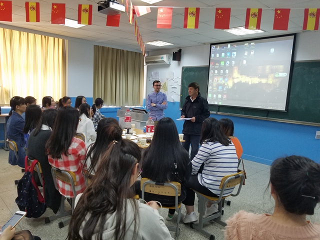 欣赏电影前同学们品尝了由西班牙大学联盟提供的西班牙美食。西班牙外教MARIO给同学们介绍了电影的基本情况和剧情,该中心也为同学们准备了中文版的剧情简介。观影结束后,同学们畅谈了观影感受,表示观影活动让他们进一步了解了西班牙文化。