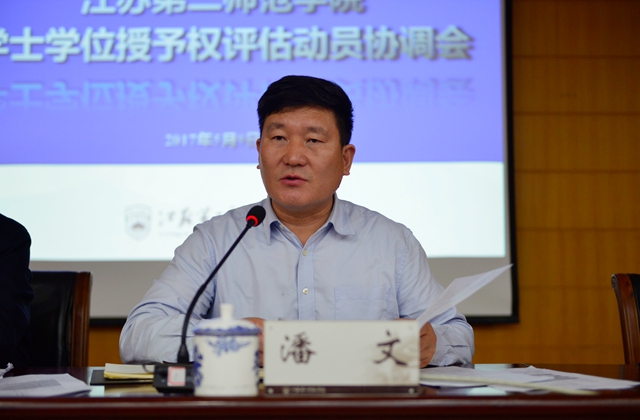5月9日,我校在草场门校区教科研楼511会议室召开学士学位授予权评估动员协调会。校长王仁雷出席会议,各职能部门、二级学院相关人员参加会议,副校长潘文主持会议。