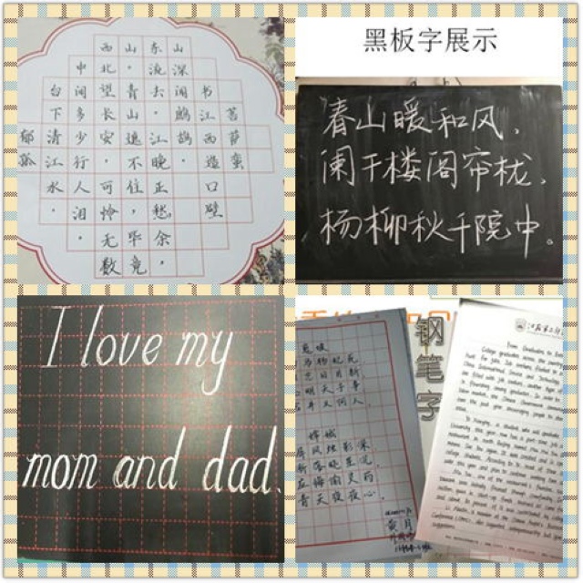 各班级学习委员对本班的教师技能训练情况、先进个人情况进行展示,对集中训练、中英文书法练习、原文阅读等进行阐述。16普本2班学委唐梅洁同学用图片对比的方式向大家展示了同学们的训练成果,并且用具体的事例给大家介绍了该班在演讲方面的创新。她的汇报获得了老师们的一致称赞。经过教师技能集中训练,同学们提高了演讲能力、书写能力。