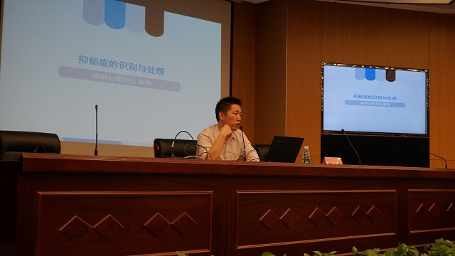 表彰大会和启动仪式结束后,南京财经大学心理健康教育与咨询中心专职心理咨询师崔伟老师应邀作了《抑郁症的识别与处理》专题讲座。讲座立足专业并结合实例对抑郁症知识进行了讲解,对帮助同学们科学、全面地了解了抑郁症,更好地做到关爱他人、关爱自己起到了积极的作用。