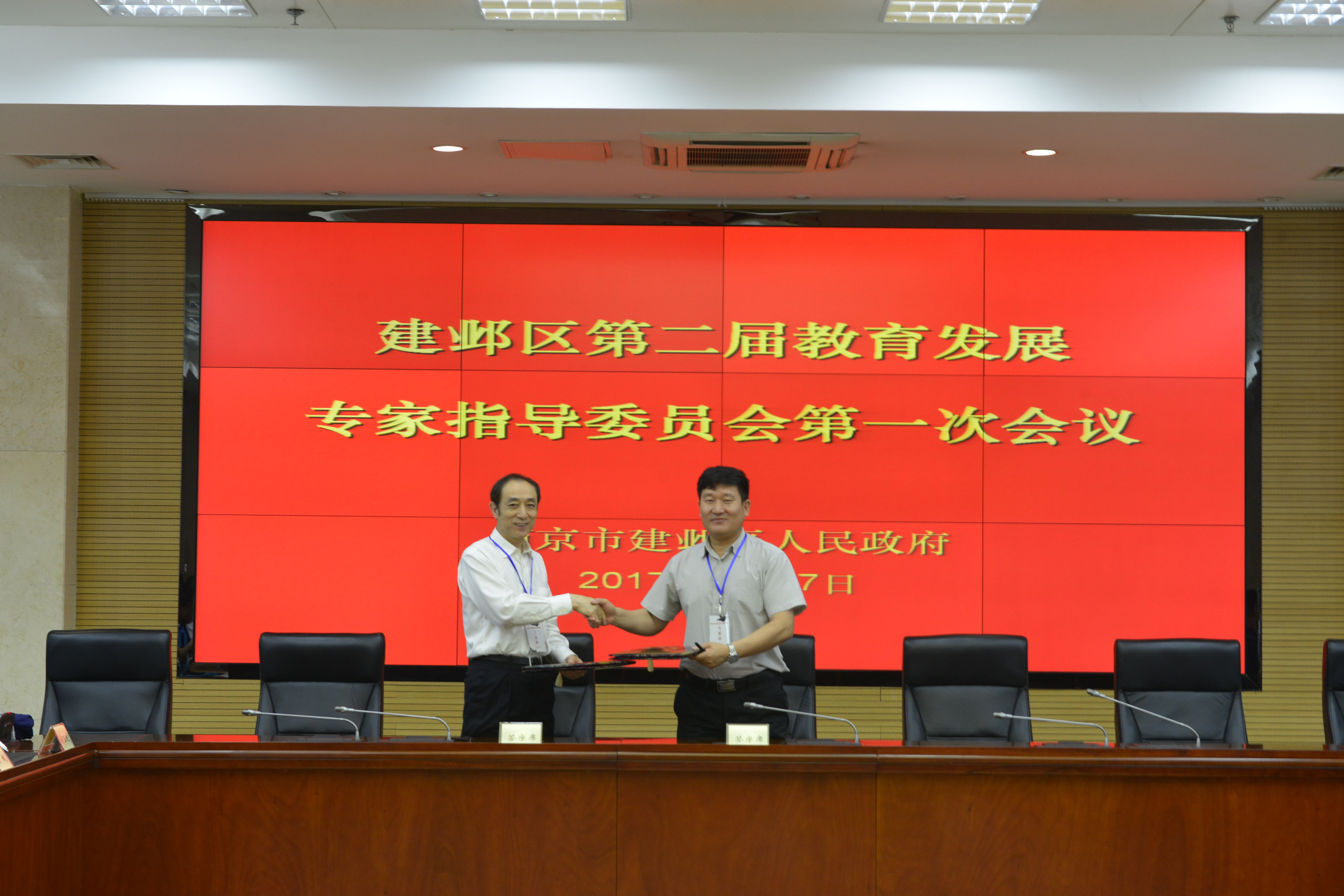 潘文代表学校签署协议。此后,与会专家就建邺区教育发展问题展开热烈研讨。