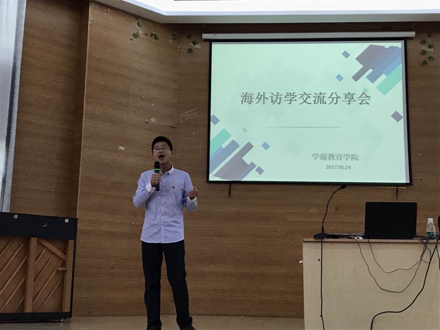 5月24日下午,学前教育学院在小行小区报告厅举办学生海外访学交流经验分享会。国际合作与交流处罗丽冬、教务处徐洁以及学前教育学院全体教师参加会议。陈维老师主持会议。