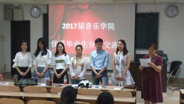 5月31日下午,音乐学院举行2017届优秀毕业生经验交流会。该院党总支书记蒋向红出席并讲话,六位2017届优秀毕业生在会上进行经验交流。音乐学院大二和大三学生参加会议。