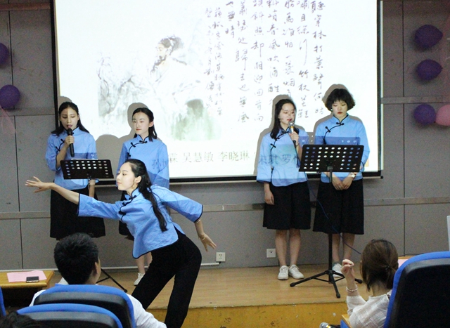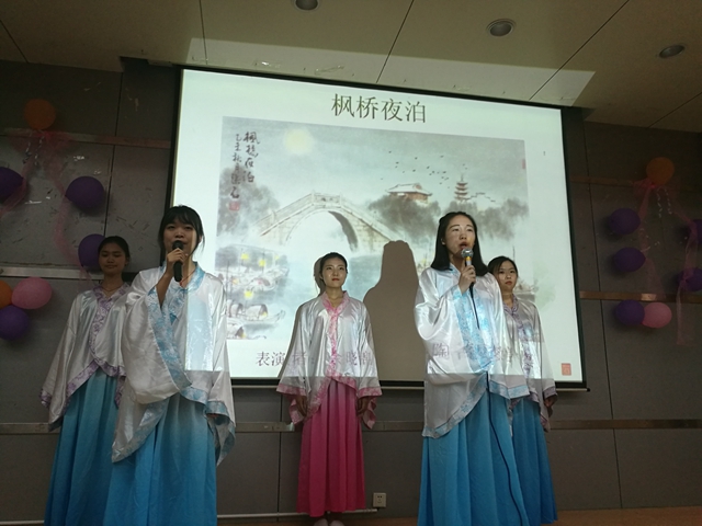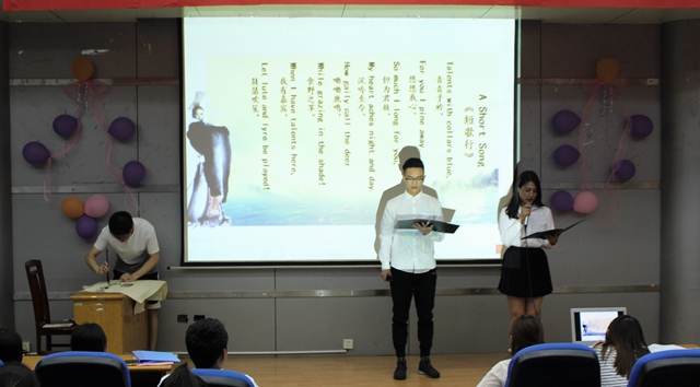 5月26日晚,外国语学院学生党支部、学生会在浦口校区302报告厅举行“歌以咏怀”古典诗词经典英文译本诵读会。该院党总支副书记黄晓波出席诵读会。
