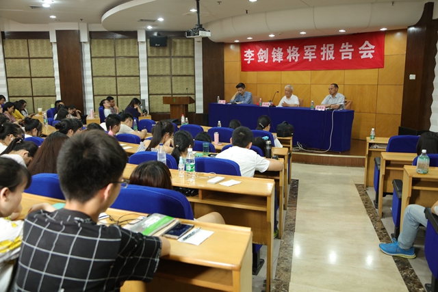 年逾九旬的李剑锋老将军,从“投身革命、学习成长、参加战斗”三个层面,将在场的青年大学生带入了烽火硝烟的战争年代。他时而侃侃而谈,时而慷慨激昂,时而挥动有力的手臂,用生动的故事和感人的亲身经历,讲述了一个革命老人为了新中国的解放、为了人民的幸福生活、为了共产主义事业,浴血奋战的寻梦历程。他“一不怕苦,二不怕死”的英雄气概和“生命不息,奋斗不止”的革命精神,使在场的青年大学生不仅接受了一次深刻的爱国主义教育,更接受了一次心灵的洗礼。他勉励青年大学生要珍惜来之不易的幸福生活,努力继承和发扬革命先烈在长期革命斗争中形成的革命精神、优良作风和高尚品德,刻苦学习、立志成才,争做社会主义现代化事业的建设者和接班人。