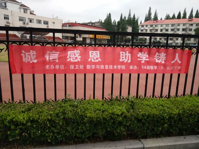 为响应学校“关于开展学生资助诚信教育主题活动”以及“防范校园贷,普及信贷知识”的号召,6月5日,数学与信息技术学院与保卫处在草场门校区联合开展“诚信资助,助学铸人”和“科学理性消费,远离校园网贷”系列主题活动。