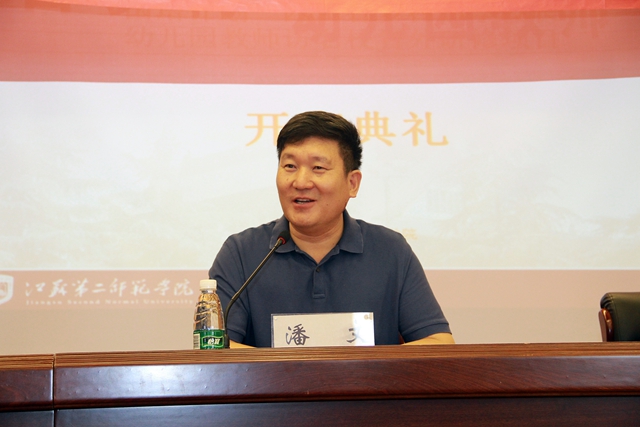 副校长潘文出席开班典礼并讲话。他介绍了我校办学的基本情况,指出,我校“职前职后融通、培养培训一体”,长期以来承担江苏全省中小学教师、校长和教育行政干部等各级各类培训和基础教育质量监测等工作,与江苏省教育科学研究院实行“两块牌子、一套班子”的办学体制,加上江苏丰富优质的基础教育、教师教育的资源,完全能统筹协调、认真做好专业的培训服务工作。他建议所有参训学员学用结合、学思结合,多多观察、多多交流、多多收获。