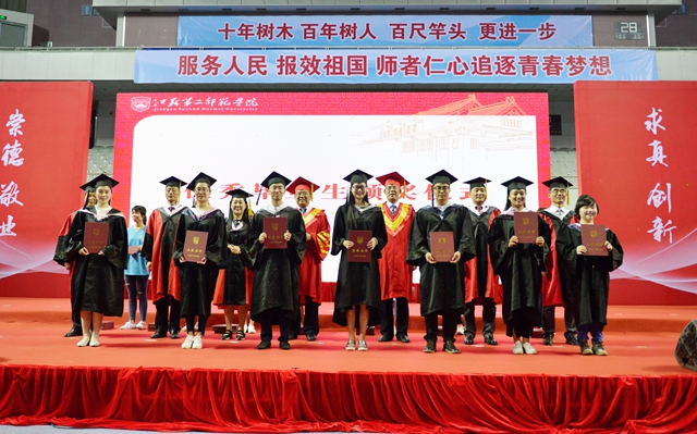 近年来,我校坚持立德树人,以生为本,把建设高水平有特色新型师范院校的基点放在高素质人才培养上,通过实施“‘1+1+1’工程”,成立江苏诗教联盟及研究中心、辅导员协会等,培育打造师范校园文化品牌,实现全程育人、全方位育人。本届毕业生中有17人获国家奖学金,17人被评为省级三好学生和优秀学生干部,115人考取硕士研究生,文学院毕业生钱墨痕获评省大学生年度人物。这些不俗成绩的取得,凸显出我校育人工作取得了“立德树人有道,春风化雨无声”的实效。
