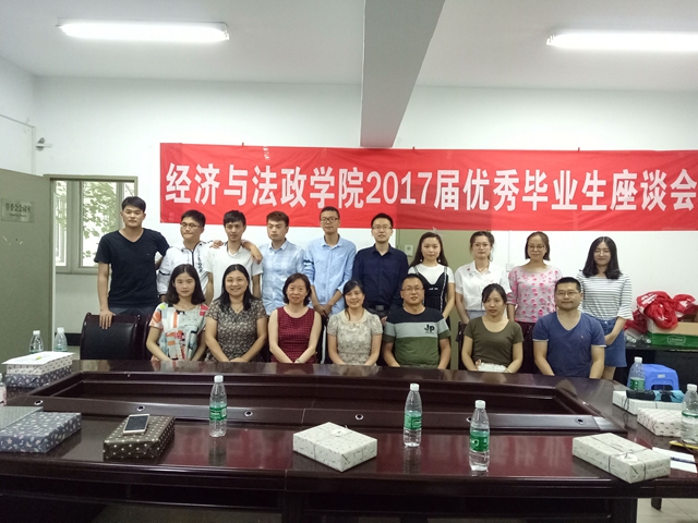 6月22日下午,经法学院举办2017届优秀毕业生座谈会。党总支书记王曦、副院长成谢军,毕业班班主任冯琦、罗楠及辅导员们出席。