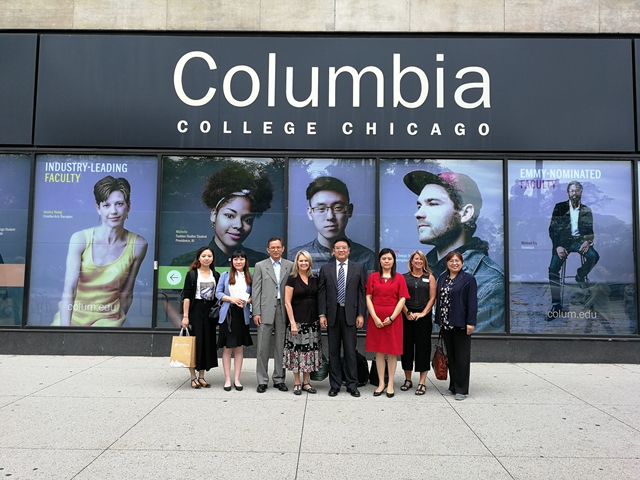 美国芝加哥哥伦比亚学院是一所综合性艺术大学,其电影、摄影、文学、艺术管理等专业赫赫有名。6月28日,李洪天一行与该校全球教育和国际交流计划负责人进行热烈会谈。双方全面交流了艺术类专业的合作培养体制、“3+1”项目合作和未来的发展趋势。李洪天充分肯定了哥伦比亚学院的教育方式、实践教学等。