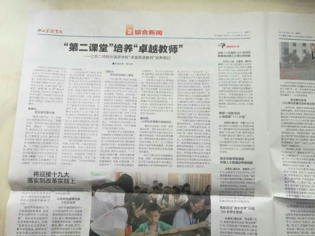 [江苏教育报] “第二课堂”培养“卓越教师”