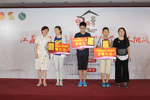 8月26日至27日,由共青团江苏省委、江苏省学生联合会、江苏省少先队工作委员会主办的江苏省首届“菁菁杯”中小学生“国学达人”挑战赛在我校成功举行。团省委副书记蒋敏,我校副校长刘继红,团省委中少部部长张志方,团省委中少部副调研员徐美华,我校团委副书记刘姝等出席活动并为获奖选手颁奖。江苏教育出版社编审、江苏省教育学会常务理事姚卫伟,中学生杂志主编、中国国学研究会副会长王荣伟,我校文学院副院长杨思贤等担任比赛评委。