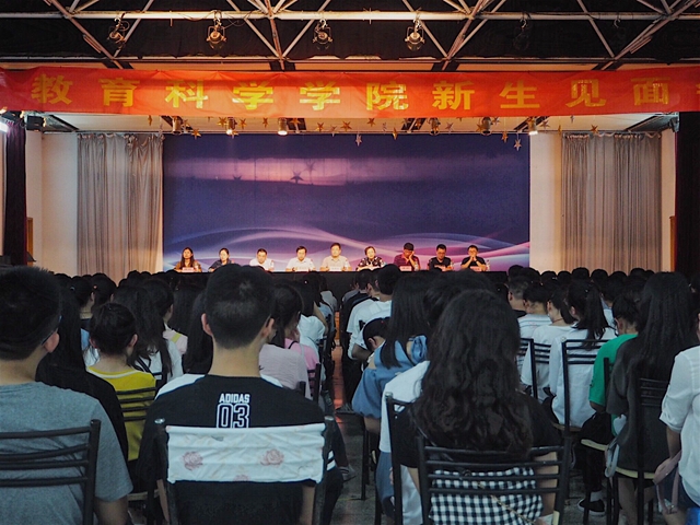 9月9日,新生报到当天下午4:30,教育科学学院在浦口校区食堂二楼举办新生见面会。副院长陈国庆、党总支书记王玲玲、党总支副书记张志行、全体辅导员、新生班班主任出席见面会,张志行主持见面会。