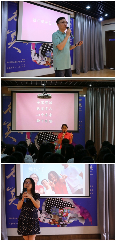 路明详细介绍了美院的专业设置、教师情况,他指出,每一位新生都应该 “用情怀驱动艺术之舟”,做到“手里有活”——精湛的专业技能;“眼里有人”——向大师致敬;“心中有事”——用心感悟生活;“脚下有路”——多看艺术展览。