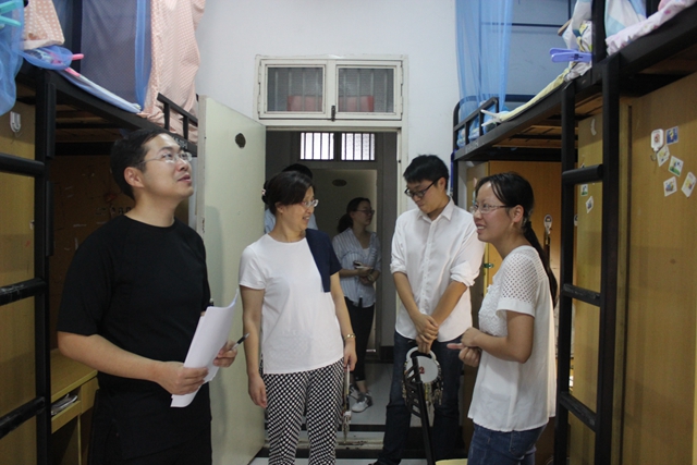 9月18日下午、19日上午,教育科学学院党总支书记王玲玲、副书记张志行带领全体辅导员分别走访草场门校区和浦口校区该院学生宿舍,部分班主任和学生干部一同参加。