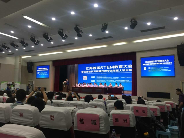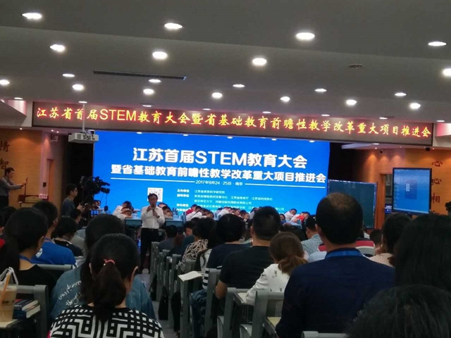为推动小学教育(科学)专业的学生更深入了解科学教育尤其是STEM教育的现状,以更好地规划职业路径,有针对性地提升职业技能,在省教研员卢新祁老师的精心策划下,9月24日至25日,生化学院组织2015级小学教育(科学)专业全体学生参加了“江苏省首届STEM教育大会暨省基础教育前瞻性教学改革重大项目推进会”。