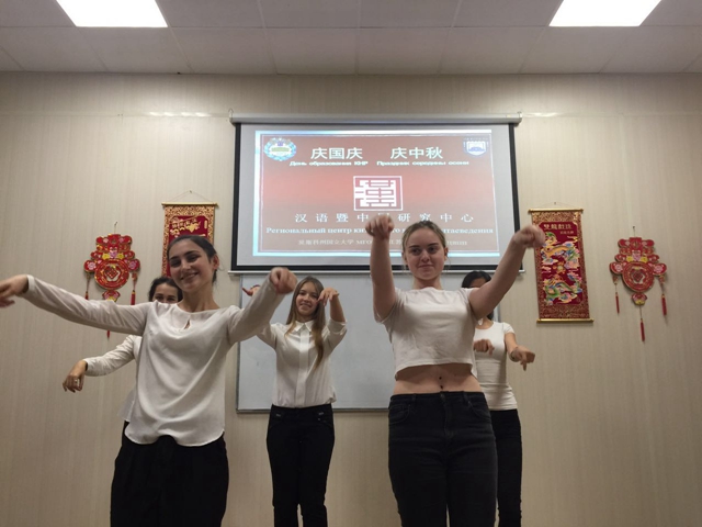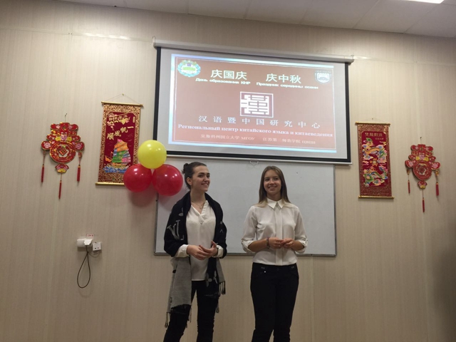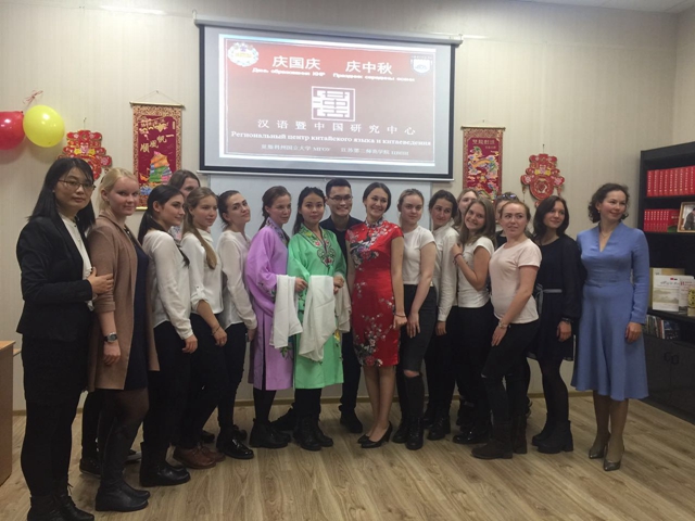 10月6日,我校设于俄罗斯莫斯科州国立大学的汉语暨中国研究中心欢歌笑语,充满了节日气氛,莫斯科州国立大学的汉语老师和学汉语的学生们在此组织了一场“庆国庆 庆中秋”联欢会。